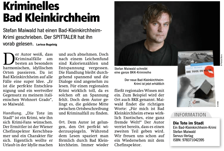 Da ist es! Mein neues Buch! Hier auch schon die erste sehr nette Kritik (aus dem Magazin »Der Spittaler«):
