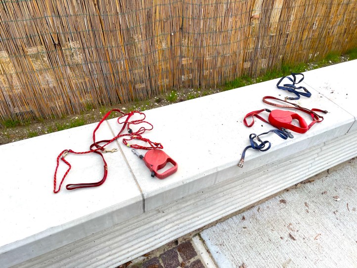 Eigenartig: Vier oder fünf Hundeleinen, aber kilometerweit weder Hunde noch deren Besitzer in Sicht. Stoff für eine mystische Geschichte? Gar eine Horrorstory? Was würde Stephen King daraus machen?