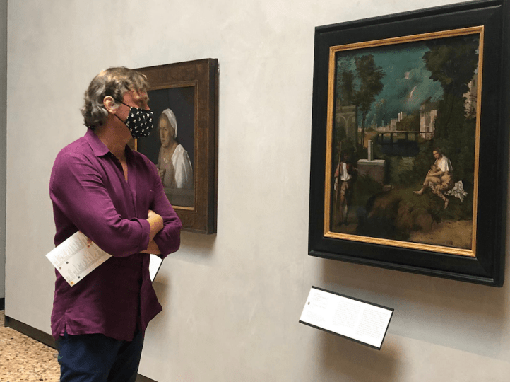 In Venedig öffnen die Museen! Das ist natürlich eine wunderbare Nachricht und ein weiterer, vorsichtiger Schritt zurück in die Normalität. Genau heute geht es beispielsweise auch in den Gallerie dell’Accademia wieder los. Hier seht ihr mich vor Giorgiones geheimnisvollem Bild »La tempesta« (»Das Gewitter«), dessen Sinn Kunsthistoriker bis heute nicht deuten können. Hier habe ich etwas Längeres über das 500 Jahre alte Rätsel geschrieben.
