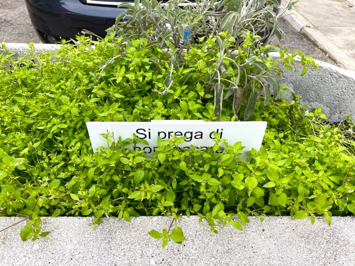 Klasse, dachte ich, gratulierte mir zu meiner italienischen Checker-Schwiegermutter und begab mich zu dem Strauch. Und was sah ich dort? Ein Verbotsschild.