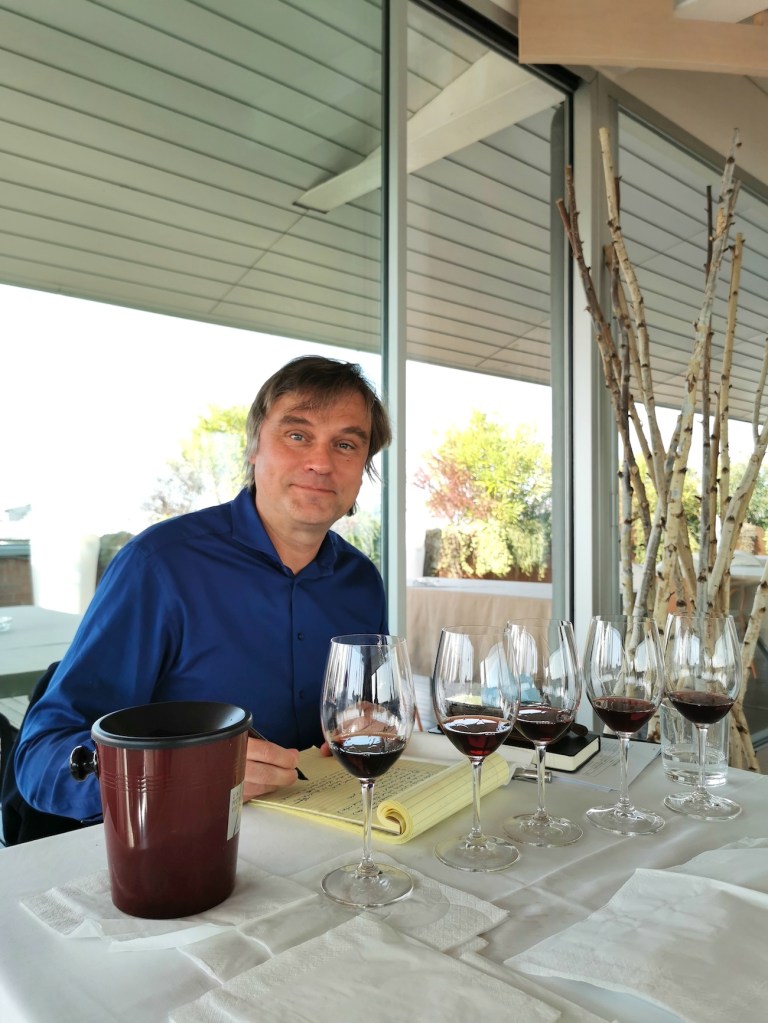 Gestern haben wir die ersten 60 Weine verkostet. Brutal. Klar, du spuckst alles aus, was ja schon ein Frevel ist, aber bei solchen Degustationen geht es nicht anders. Heute sind 120 Weine dran, um 9 Uhr gleich nach dem Frühstück geht’s los. Das ist zwar Jammern auf hohem Niveau, aber Vergnügungssteuer ist auch nicht fällig. Und: Auch das Spucken in den Napf will gelernt sein. Du darfst nicht aktiv spucken, sondern musst es ganz locker über die Lippen rauslaufen lassen. Mein Tisch sah nach dem ersten Tag aus, als hätte man ein Schwein geschlachtet. Sehr peinlich. Vor allem, weil man mich ja offenbar für einen Weinexperten hält. Unter den Kollegen sind ein paar echte Schwergewichte dabei, und nach zwanzig Jahren in Italien bin ich zwar kein Volltrottel mehr, doch ich bin mir nicht sicher, in welcher Liga ich wirklich spiele.