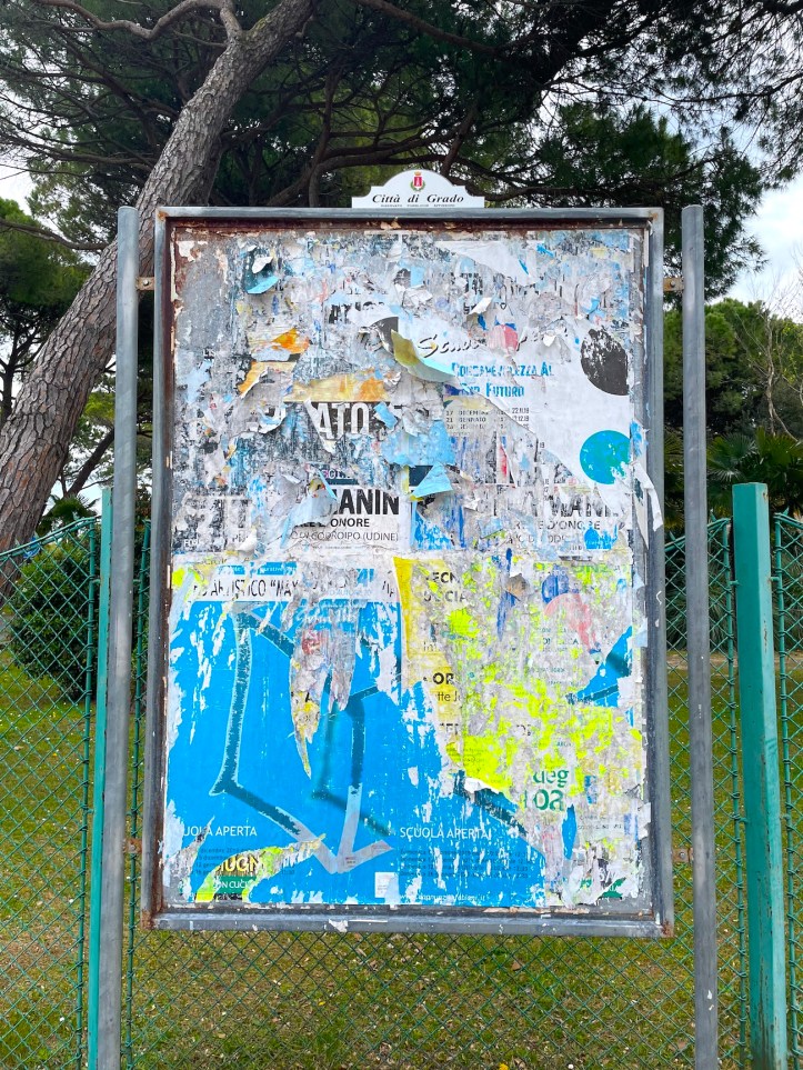 Wie übel es den Kulturbetrieb in diesen Monaten erwischt hat, seht ihr sinnbildlich an dieser Plakatwand in Grado, an der normalerweise Konzerte, Events und Ausstellungen angekündigt werden.