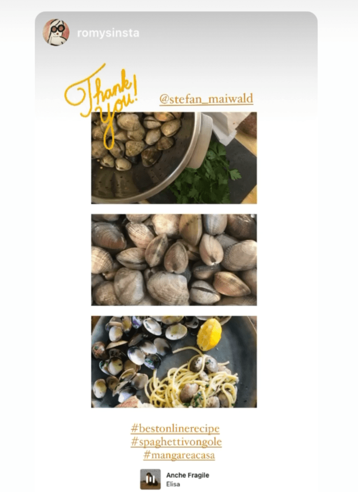 Vielleicht wird es ja doch noch etwas mit meiner künftigen Karriere als Kochbuchautor: Instagrammerin @romysinsta hat mein Spaghetti-Vongole-Rezept gelobt, und ich muss auch sagen, dass es wirklich gut ist. Es ist nämlich nicht von mir, sondern ich habe einfach mitgeschrieben, wie mein Kumpel Roby die Spaghetti zubereitet hat.