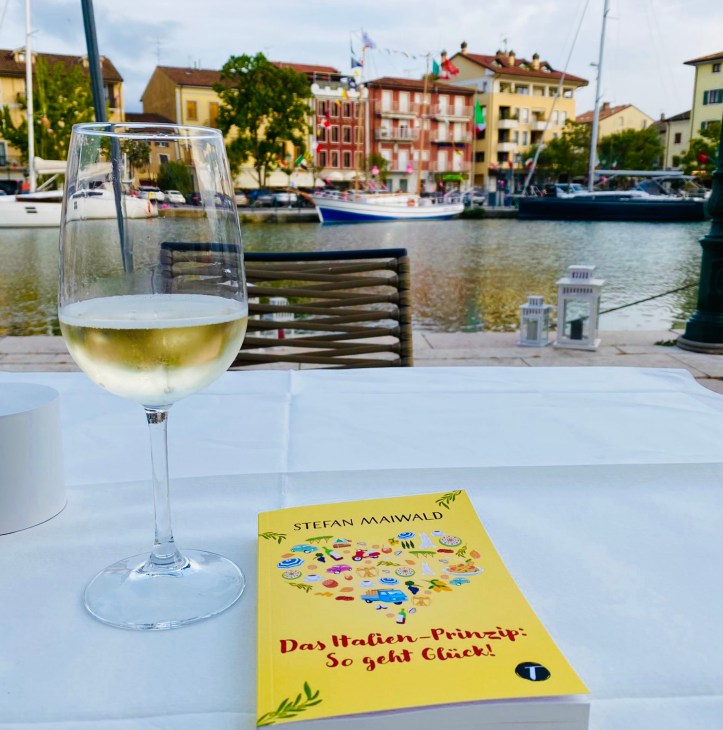 Deswegen auch noch einmal der Hinweis auf das Gewinnspiel: Fotografiert das Buch in Grado oder sonstwo, beim Aperitivo, am Strand, auf dem Balkon, im Restaurant, mit euch auf dem Bild oder ohne euch, und schickt mir das Foto! Es gibt zwei Kindle-E-Reader im Wert von je 100 Euro zu gewinnen.