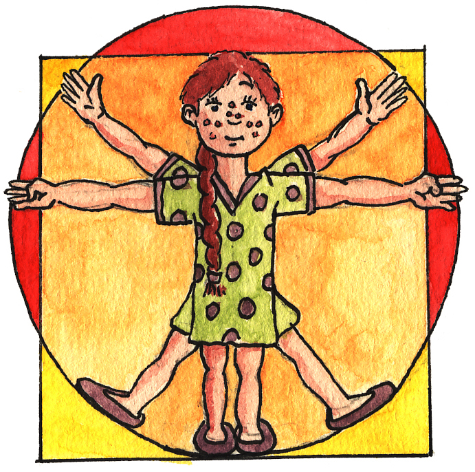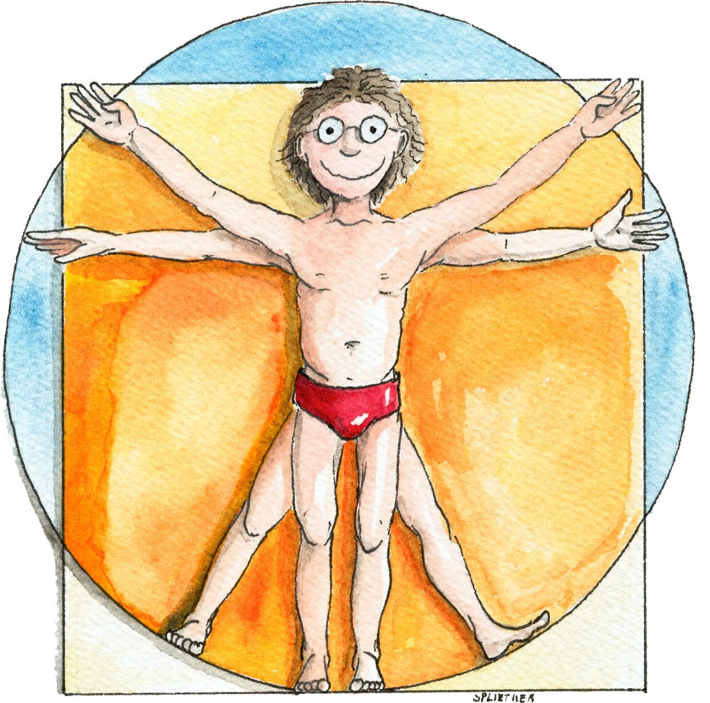 Er hat es sogar gleich zwei Mal geschafft! Jedenfalls schickte mir der Illustrator Marcus Splietker (marcus@splietker.com) zwei von ihm kreierte kinderfreundliche Vitruvianische Menschen. Sehr süß!