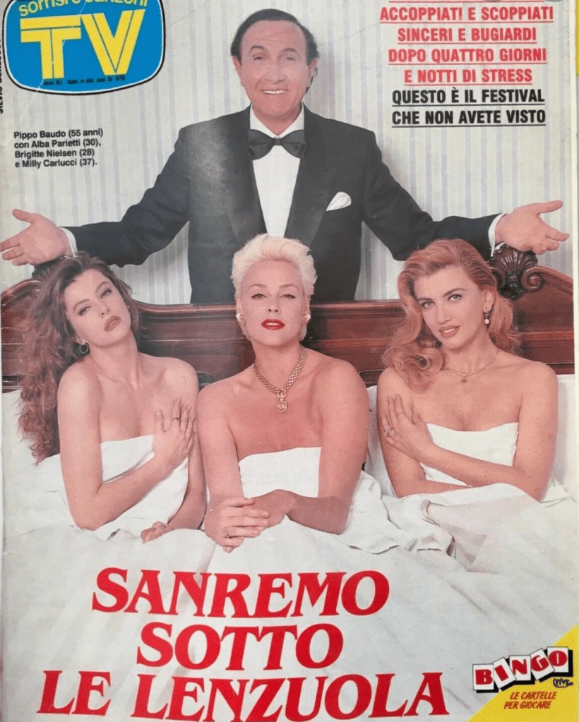 Und zweitens haben wir ja über politische Korrektheit gesprochen. Das hier war der Titel der größten italienischen TV-Zeitschrift zum Festival im Jahr 1991.