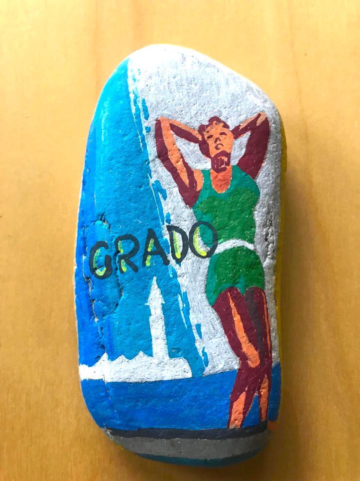 Und wo wir schon bei Kunst sind: Sibylle Kulisch hat mir Fotos ihrer beeindruckenden Grado-Kunstwerke zugeschickt, auf Flusskieselsteinen gemalt. Hier kommen drei Steine, die nächsten drei gibt es nächste Woche. Großartig!