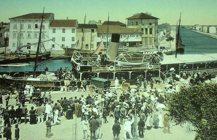 Fundstück aus vergangenen Zeiten: Ein Blick auf den Hafen aus dem frühen 20. Jahrhundert, gefunden bei Vinicio Patruno. Gerade legt ein Schiff mit Sommerfrischlern an.