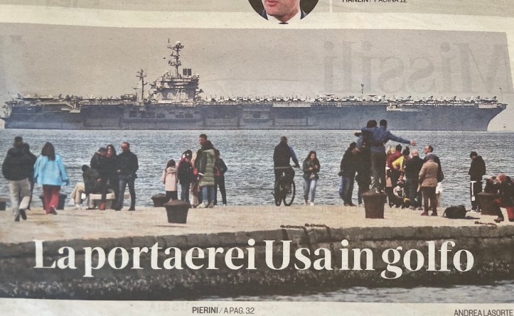 Diese Woche bleiben wir bei Maschinen: Der amerikanische Flugzeugträger Harry S. Truman mit 4000 Mann Besatzung ankert direkt vor Triest, und es ist halt schon ein faszinierender Anblick, auch für Menschen mit pazifistischer Gesinnung. Angeblich hat es nichts mit dem Krieg zu tun, in den letzten Jahren sind immer mal wieder größere Brocken vorbeigekommen.