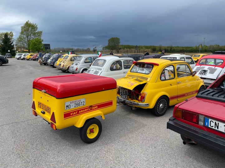 Denn wem schmilzt bei diesem Anblick nicht das Herz? Ich bin mitten in eine historische Fiat-500-Rallye geraten. Was für schöne, schnuckelige Autos!