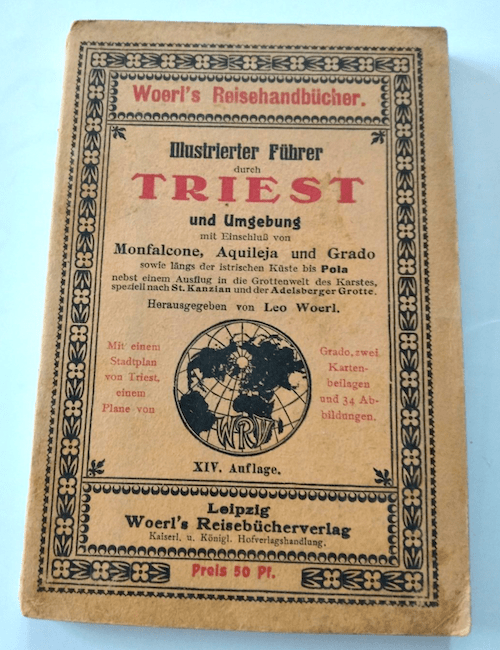 Leser Simon E. hat tatsächlich mitgewühlt und in einem Antiquariat immerhin einen Triest-Reiseführer aus dem selben Verlag gefunden, in dem auch über Grado berichtet wird.