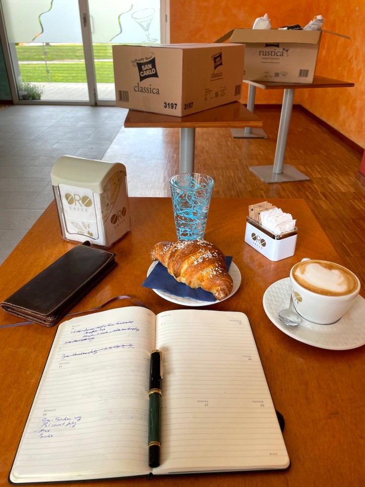 Mein Büro hat wieder eröffnet! Die Bar Marina Fiorita, die zwei Monate lang wegen Personalmangel schließen musste, geht in die neue Saison. Und ich kann mich endlich wieder in meine Schreibecke hinten rechts hocken, wo ihr mich jeden Morgen findet.