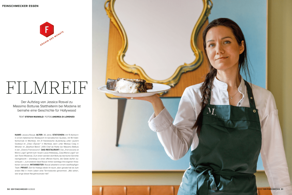 Maiwald als Druckerzeugnis: Für den aktuellen »Feinschmecker« war ich bei der wunderbaren Jessica Rosval in Modena zu Gast, die mit Massimo Bottura kocht. Hier zwei von sechs Doppelseiten: