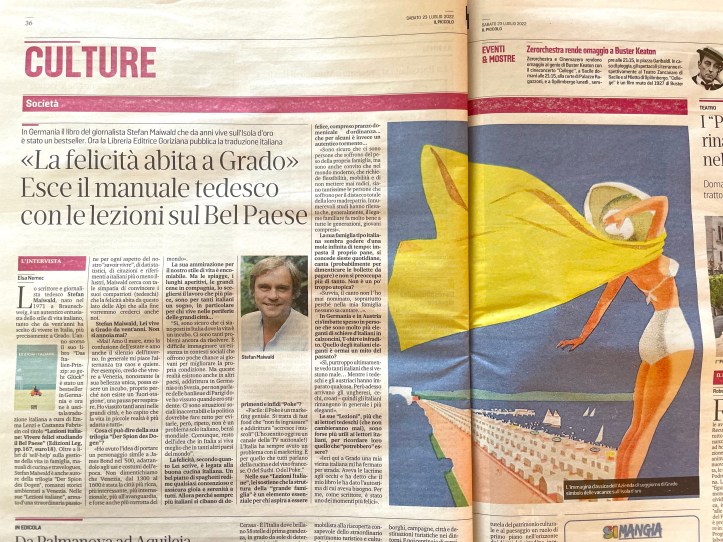 Ui, das hat mich doch überrascht: Die Tageszeitung Il Piccolo widmete mir den Kultur-Aufmacher, und ich wurde tatsächlich in der Fußgängerzone nach Autogrammen gefragt. (Okay, es waren nur zwei – aber immerhin: Mehrzahl!)