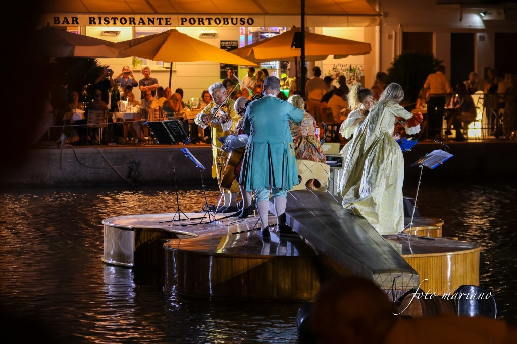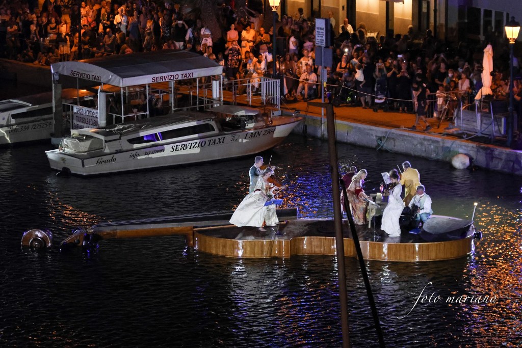Während ich in Venedig war, kam Venedig nach Grado: Die »schwimmende Geige« des venezianischen Künstlers Livio De Marchi war zum ersten Mal außerhalb Venedigs zu Gast. Der Künstler baut seit Jahrzehnten ungewöhnlich geformte Boote, doch die Geige ist sein Meisterwerk. Nun gab es ein Konzert auf der Geige im Hafen von Grado, was natürlich sehr romantisch war.