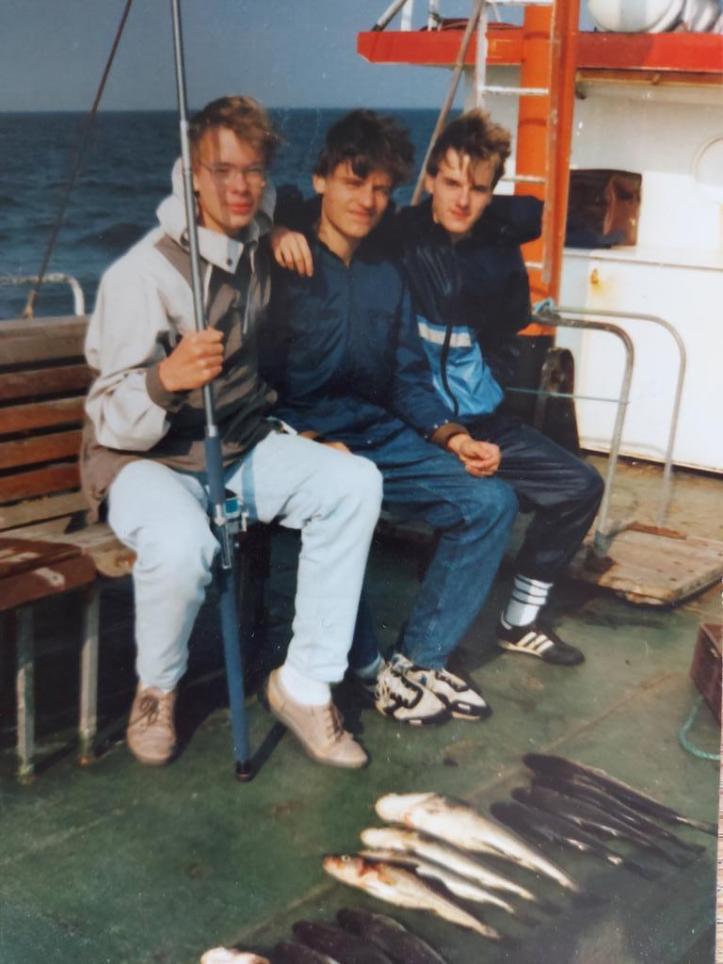 Ein Fundstück, das mir ein ehemaliger Klassenkamerad zuschickte. Von meinem ganzen Leben als 16-jähriger gibt es nur ein einziges Foto – natürlich unscharf und mit geschlossenen Augen. Aber immerhin bei einer abenteuerlichen Sache, nämlich beim Hochseeangeln. Und die Fische haben wir tatsächlich selbst gefangen.