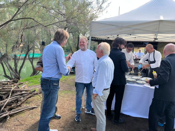 Oh, das war eine feine Sache: In der Lagune von Grado fand heute »Laguna dei sapori« statt, eine Genussveranstaltung mit Sterneköchen und Showcooking. Oder wie es ein Kollege von mir immer nennt: »ein großes Geesse« (Ge-esse). Kann ich nur empfehlen – und mit 60 Euro pro Teilnehmer inklusive Getränken und Bootstransfer durch die Lagune wahrlich nicht teuer.