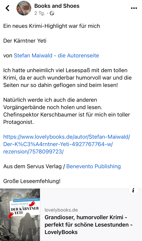 Sehr schöne Kritiken zweier Buchblogger zum »Kärntner Yeti« – danke dafür!