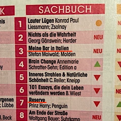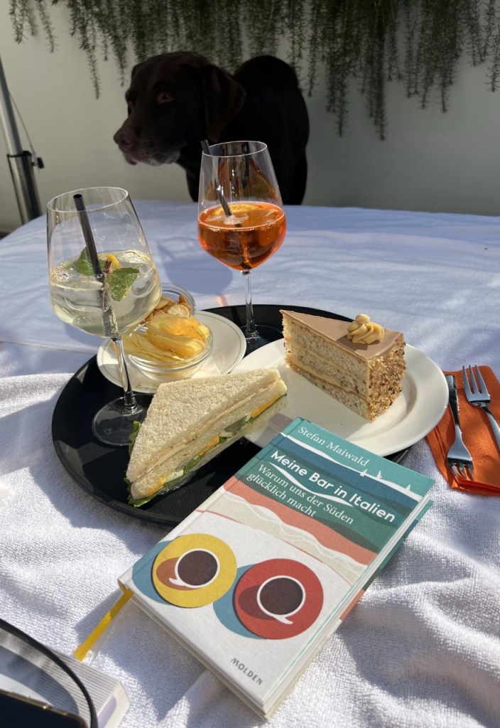 Reisen wir allmählich zurück nach Italien: Hier entspannt sich das Buch in Meran bei einem verdienten Aperitivo. Danke, Angela A.!
