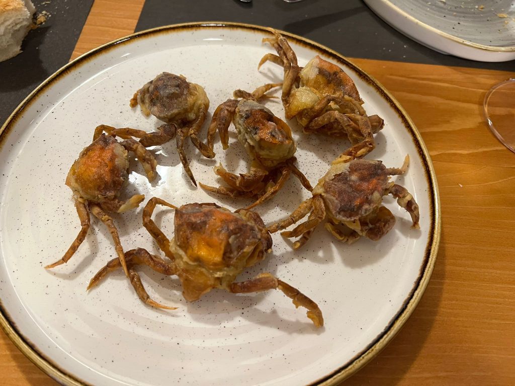 Mein Schwager hat Geburtstag, und er hat für uns alle moèche geordert, eine feine, gewöhnungsbedürftige Spezialität aus Venedig, nämlich Krebse direkt nach der Häutung (also ganz weich), die im Ganzen frittiert und verzehrt werden. Ich habe 20 Jahre gebraucht, um mich mit baccalà anzufreunden, jetzt kann ich nicht genug davon bekommen. Bei moèche, ich gebe es gern zu, befinde ich mich allerdings noch in der Eingewöhnungsphase.