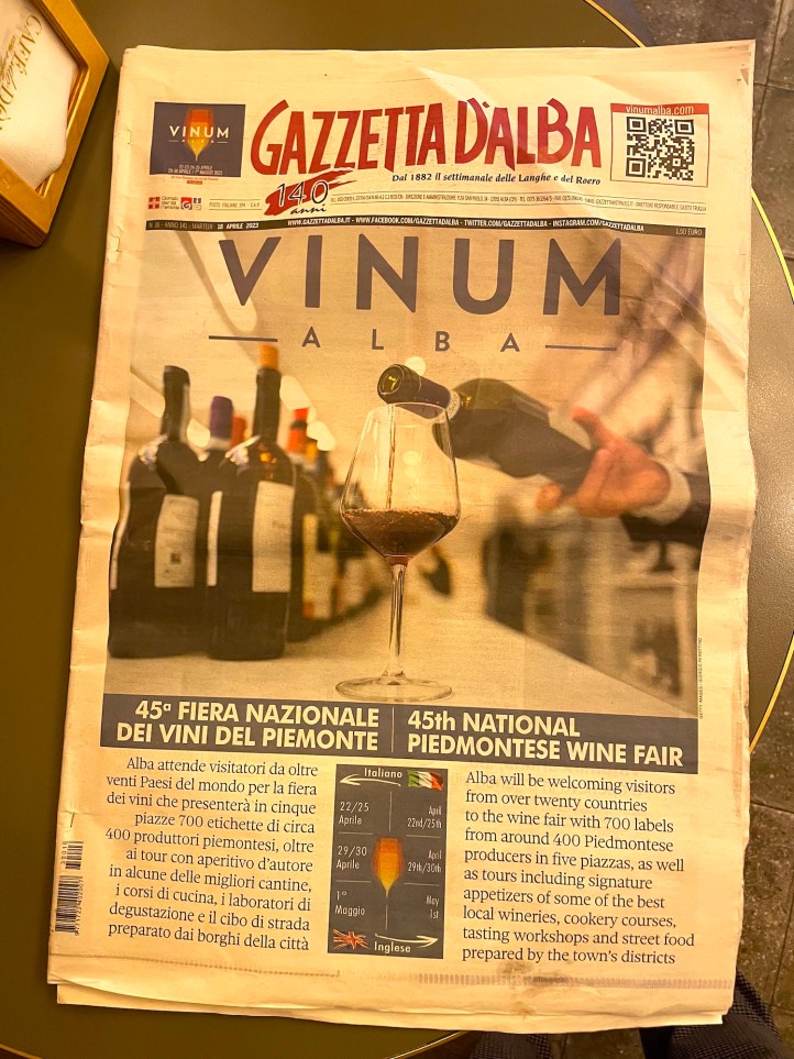 Rund um Alba dreht sich einfach alles ums Essen und Trinken, wie die Titelseite der örtlichen Zeitung beweist: