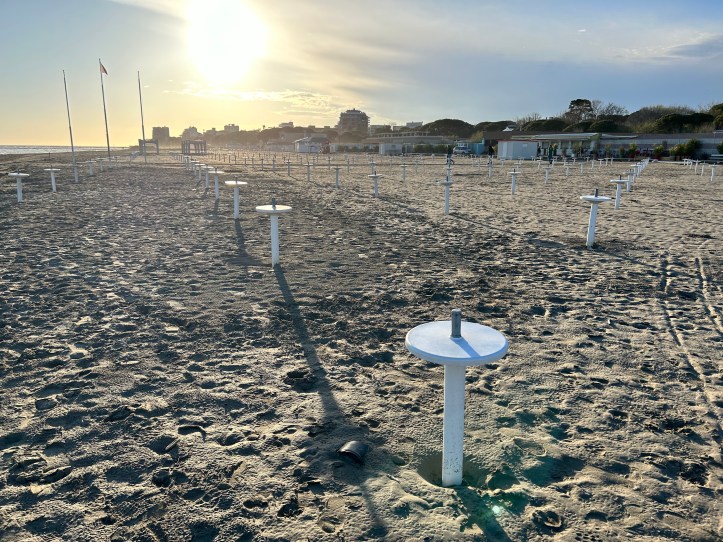 Au weia, das war nix: Ostern ist in Grado sauber ins Wasser gefallen. Besonders der Ostermontag war heftig verregnet, und das ist besonders bedauerlich, denn an jenem Tag veranstalten die Italiener traditionell die grigliata di pasquetta, ein Barbecue unter Freunden – während die familiären Verpflichtungen am Ostersonntag abgegessen und weggetrunken werden. Diese Barbecues sind so eine Art inoffizieller Auftakt in die Saison. Also müssen wir nächstes Wochenende feiern.