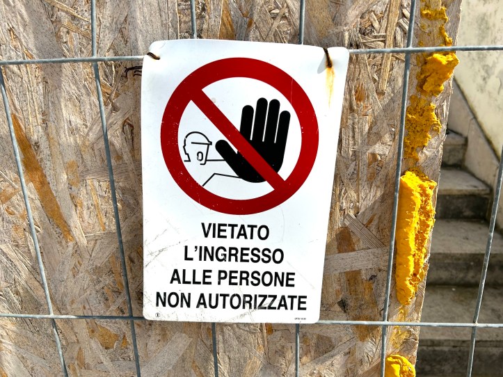 Aber eines versöhnt doch: Die italienischen Betreten-verboten-Schilder an Baustellen – dieses habe ich direkt am Meeresmuseum fotografiert – sind vom Design her wirklich gelungen.