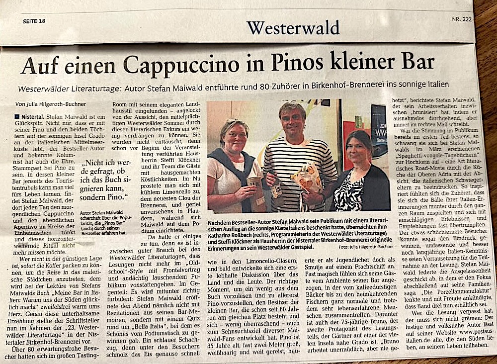 Auf Instagram findet ihr mich unter @buch_und_wein. In der Story poste ich jeden Tag eine Kleinigkeit aus Grado (oder von dort, wo ich gerade unterwegs bin).