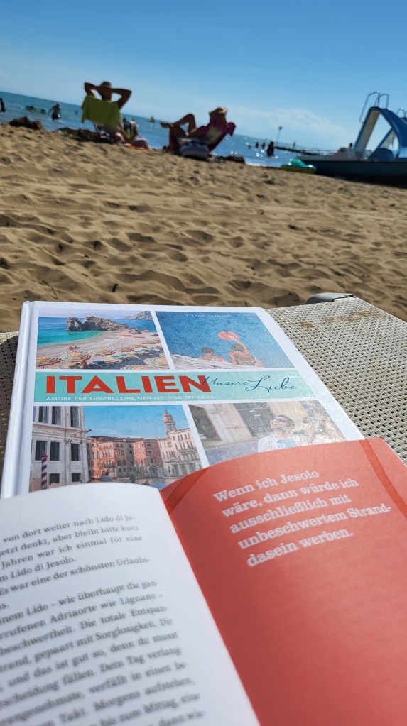 Hier kommen ein paar Zuschriften der letzten Tage: Uta W. hat »Italien – unsere Liebe« mit auf große Fahrt genommen, und einmal sogar, passend am Strand von Jesolo, die »Spaghetti-vongole-Tagebücher« an richtiger Stelle aufgeschlagen.