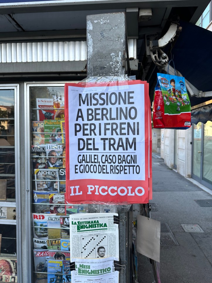 Und Alfred L. schickt mir diese Schlagzeile aus Triest – die dortige Straßenbahn (eine lange Geschichte) hat technische Probleme, jetzt sollen die Deutschen helfen: