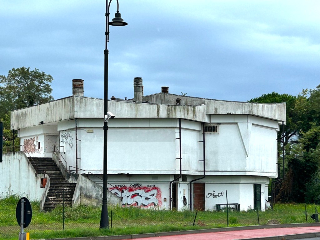 Grado Pineta versucht, sich für den Tourismus aufzuhübschen. Aber schon am Eingang steht dieses horrende verlassene Gebäude, das seit Jahren vor sich hin verfällt. Die einstige Diskothek Gradualis war im Disko-Boom der 1980er-Jahre gut besucht, aber der Disko-Boom hat sich ebenso erledigt wie das Gebäude selbst. Nun haben die Anwohner 225 Unterschriften gesammelt und dem Bürgermeister übergeben, um das Gebäude entweder in Schuss zu bringen oder, besser noch, abzureißen.