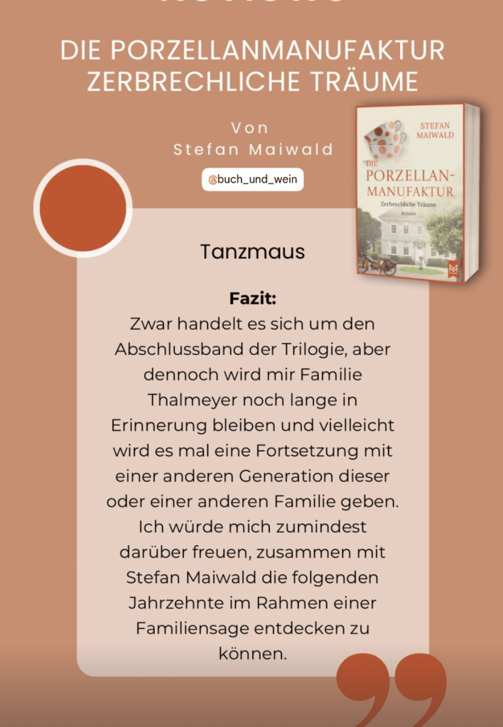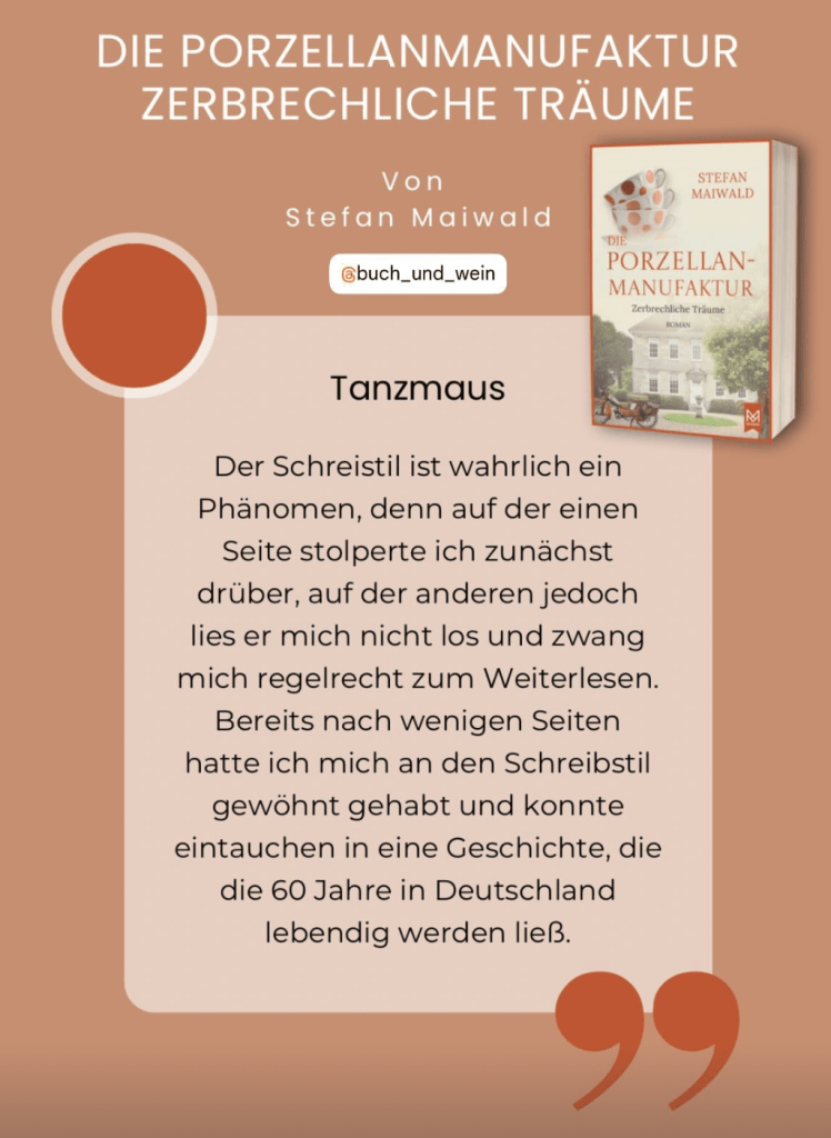 Lesestoff für verregnete Tage gibt es hier: Band III der »Porzellanmanufaktur« ist nun überall lieferbar, es geht unter anderem nach München in die wilden 1960er-Jahre, ihr werdet viele Fernsehstars treffen, an die ihr euch noch gut erinnert, und ganz viel Italien ist dabei. Hier eine Rezensentin: