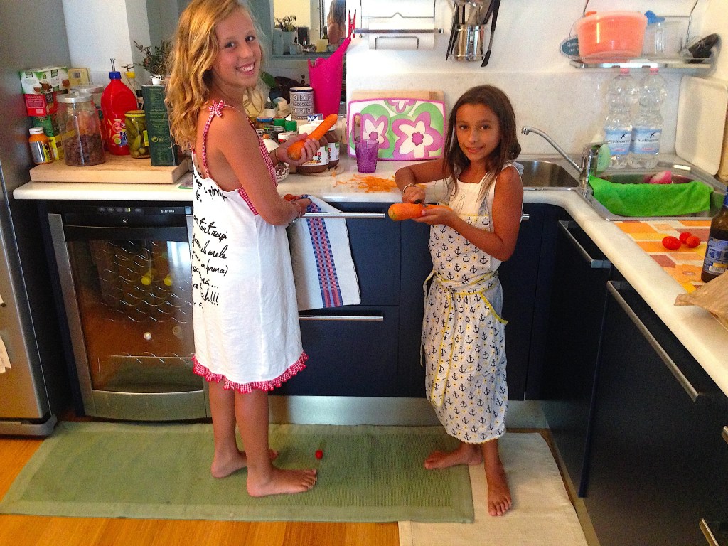 Apropos Bräune: Der Mathelehrer meiner jüngsten Tochter hier auf der Mittelschule in Grado, sehr stolz auf seine wirklich beachtliche Bräune, hat vor den Sommerferien stets die Devise ausgegeben: Wer es wage, im September gebräunter als er in die Schule zurückzukehren, bekomme zwei Punkte abgezogen. Auf diese Herausforderung ließ sich meine jüngste Tochter jedes Mal ein, und bis heute wird diskutiert, wer die tiefere Bräune hatte. Denn meine jüngste Tochter wird wirklich sehr, sehr braun, hier ein Foto (ja, ist ein paar Jahre her) von einem Julitag, da war der August noch gar nicht angebrochen.
