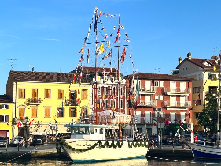Wenn ihr an diesem Wochenende kommt, freut euch auf den Sabo Grando, das wichtigste Fest in Grado. Der »große Samstag« ist der abendliche Auftakt zur prächtigen Bootsprozession zum Lagunenkloster am Sonntagmorgen, dem Perdón di Barbana. Die Prozession, immer am ersten Julisonntag, gibt es seit dem Jahr 1237; sie ist damit wahrscheinlich die älteste in ganz Italien, die durchgehend zelebriert wurde. Beim Sabo Grando wird bis tief in die Nacht gesungen und gefeiert, und wenn am Morgen die Honoratioren in ihren Uniformen und Schärpen auf die Schiffe steigen, ist bei einigen von ihnen der Gang noch leicht schwankend. Was nicht am sanften Wellengang der Adria liegt.
