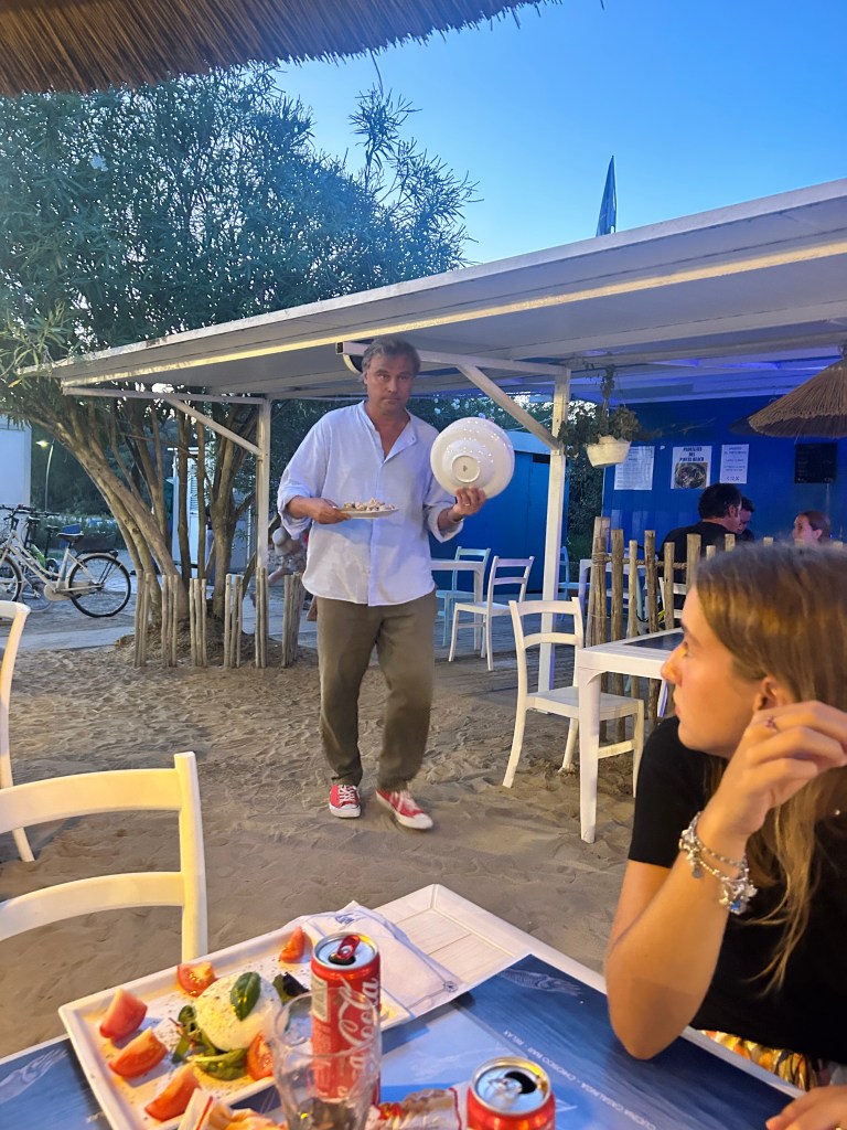 Einmal im Jahr muss es sein: Die Padellata in Pineta Beach am Pineta-Strand, ein echter Wohlfühlort. Da muss Papi mal nicht selbst kochen, sondern nur die Teller und Pfannen an der Ausgabe holen.