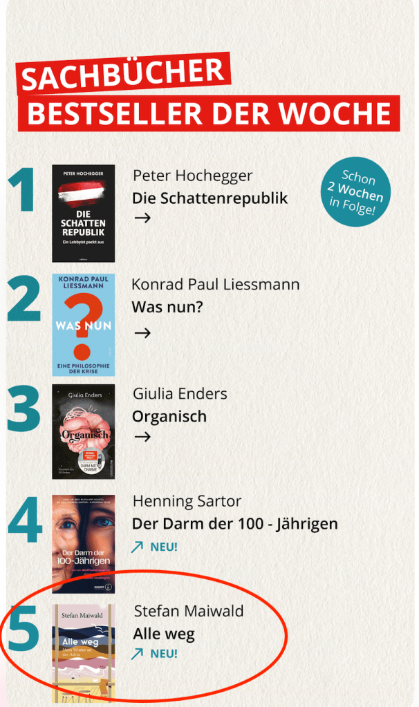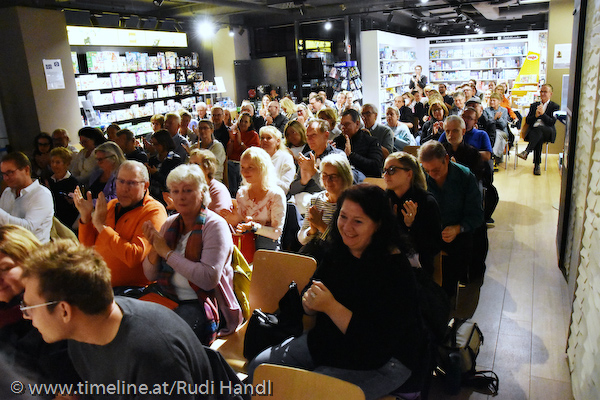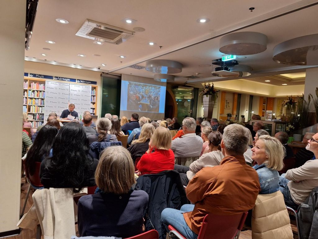 Und bei der Erstpräsentation im Thalia in Wien waren viel zu wenig Bücher da, weil die Veranstalter mit 20 Gästen gerechnet hatten, aber 120 kamen. Tut mir sehr leid – das wird garantiert nicht wieder passieren.