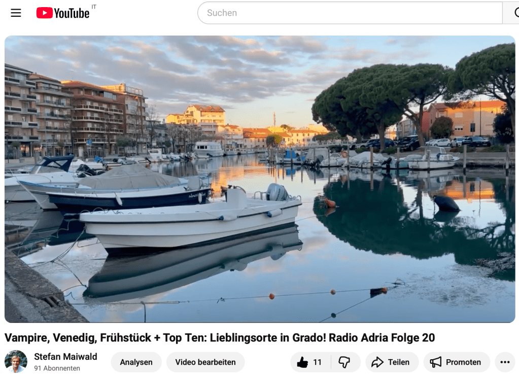 Den Podcast gibt es auch als Video mit stimmungsvollen Filmen aus Grado, Venedig und Triest.