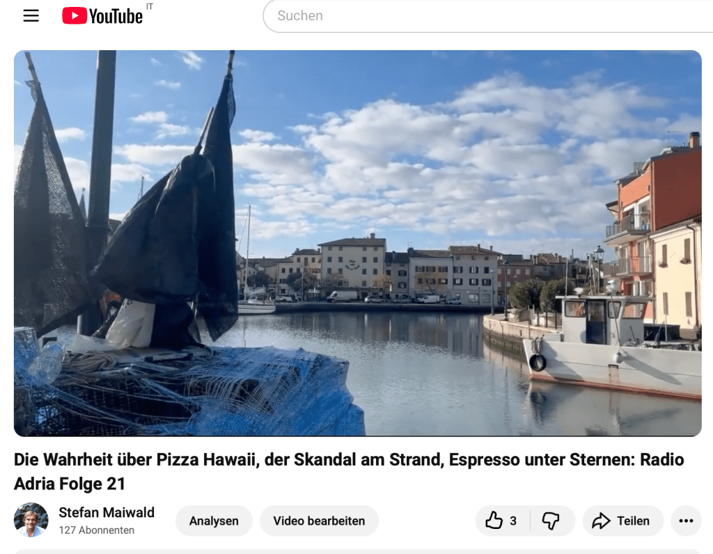 Und habt ihr schon in die neue Folge von Radio Adria reingehört? Darunter mit der schonungslosen Wahrheit über die Pizza Hawaii. Auf YouTube habe ich die Folge auch hochgeladen und mit Bildern von Grado, der Lagune und Venedig unterlegt.