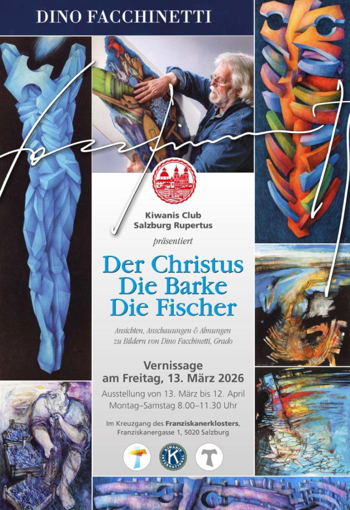 Aber viel lieber möchte ich euch Dino Facchinetti vorstellen, einen ganz wunderbaren Künstler aus Grado. Der stellt noch bis Mitte April im Salzburger Franziskanerkloster aus, schaut euch seine beeindruckenden Werke an.