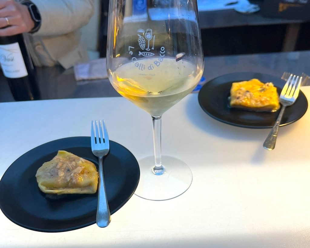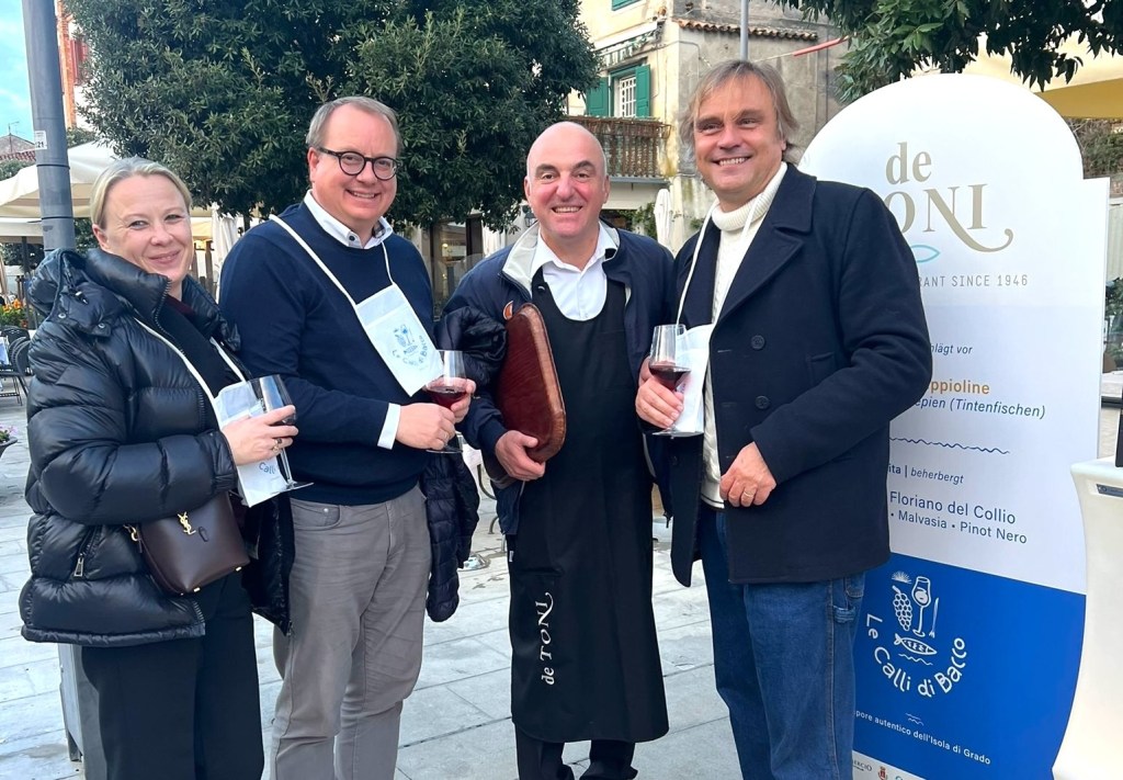 Kommen wir zur großen Umtopfung: Der Ort nahm im letzten Jahr rund 1,1 Millionen Euro mit der tassa di soggiorno ein, also der Kurtaxe. Davon müssen 65 Prozent zurück in touristische Initiativen fließen, die von der Stadt, von der Hotelvereinigung oder von der Handelskammer ausgerichtet werden. Einer der größeren Beträge fließt in das Gourmetfestival »Le Calli di Bacco«, das im Oktober 2025 debütierte und ein Überraschungserfolg wurde. 18 Restaurants in der Altstadt machten mit und boten an Ständen vor ihren Lokalen Häppchen und Getränke an. So konnten Gäste von Lokal zu Lokal bummeln und überall Köstlichkeiten naschen.