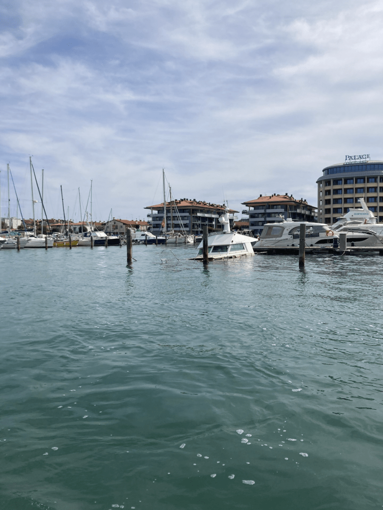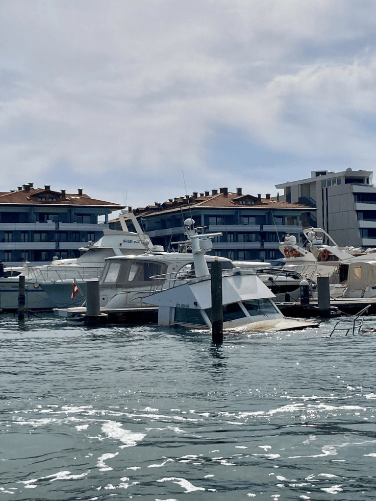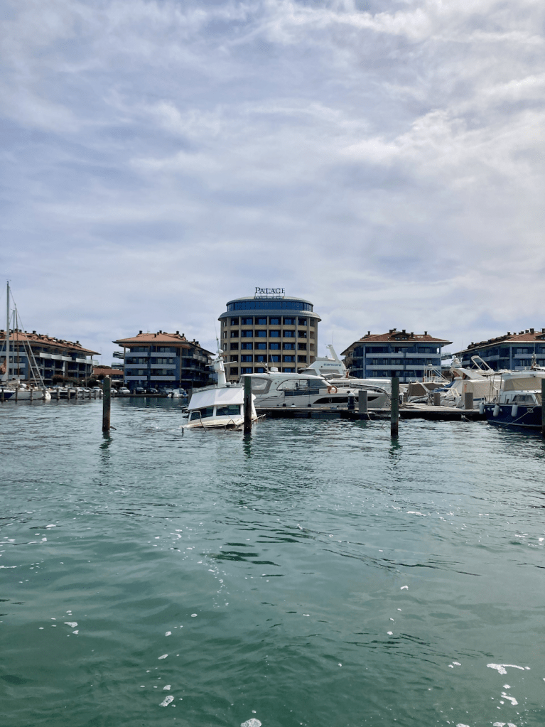 Das Rätsel des versunkenen Schiffs: Mehrere Leser haben mich gefragt, ob ich wüsste, was da in der Marina vor dem Hotel Laguna Palace los sei. Seit vielen Monaten sei da ein Schiff in Bedrängnis (laut Leser Wolfgang S. und Tochter Ella Marie sogar »seit drei, vier Jahren«). Könne man da nichts tun? Wisse man nichts über den Eigner?
